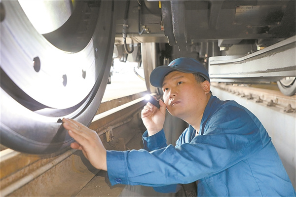 11年來(lái),黃憶靠著(zhù)一股不服輸的鉆勁和韌勁,從一名業(yè)務(wù)小白成長(cháng)為技術(shù)大拿;經(jīng)他檢修的2600余臺機車(chē),牽引著(zhù)客運列車(chē)及重載貨運列車(chē),安全馳騁在京廣、京九、隴海、蘭新、浩吉等鐵路大動(dòng)脈上。